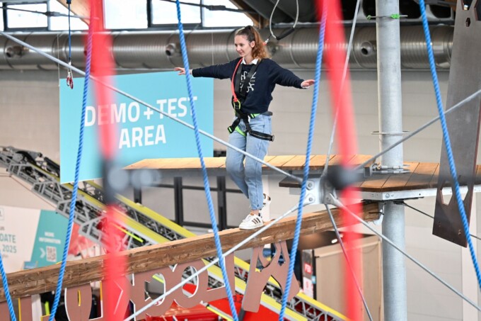 Climbing wall, high ropes course, shaft and vertical ladder, climbing tree, container tower, turntable ladder and trussing system will be available in Hall A6.