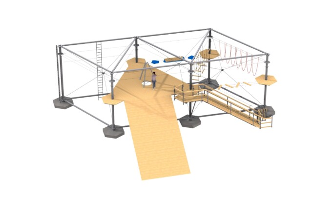 - High ropes course consisting of 6 round steel masts